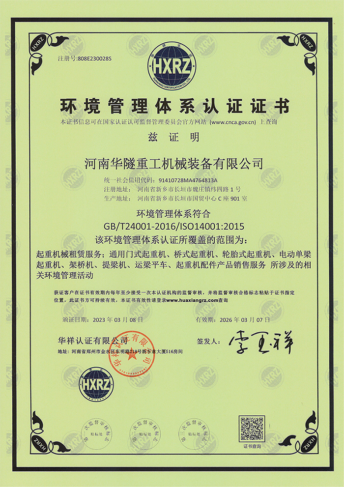 環境管理體系認證證書